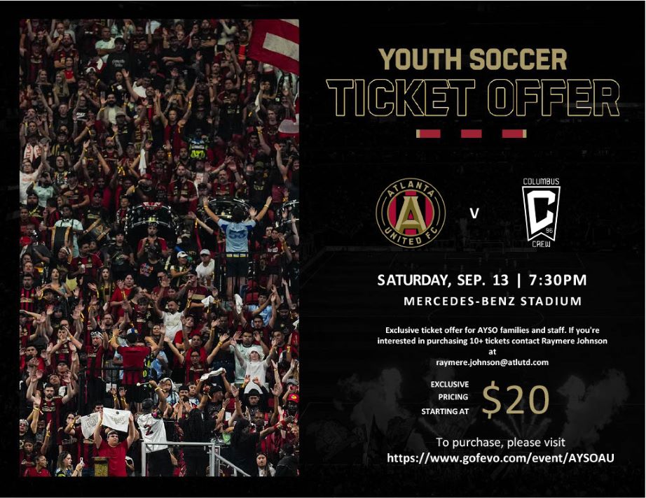 AYSO families and friends can grab special low-priced tickets to an upcoming Atlanta United home match.
